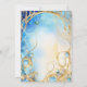 Une belle aquarelle couleur pâle et bleu foncé imitation or floral cadre ovale a une robe de bal bleu pastel ornée de fleurs rose dans le coin inférieur gauche. Les cadres de bordure sont des modèles de script de calligraphie noir qui peuvent être personnalisés pour répondre à vos besoins spécifiques. De petits papillons bleus apparaissent au-dessus et au-dessous des modèles et de minuscules diamants de parties scintillant apparaissent le long du bord supérieur, ce qui donne à l'ensemble un aspect scintillant. Ce design élégant, luxueux et tendance d'inspiration Art nouveau est idéal pour votre fille célébrant son 15ème anniversaire de quinceañera, une célébration spéciale pour les filles ou si vous êtes l'hôte d'une douche nuptiale pour une mariée à être. Convient aux événements d'été, de printemps, d'hiver et d'automne, cet invitation est sûr d'éblouir.