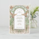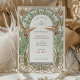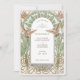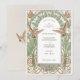 Dégustez vos invités avec le charme de l'élégance d'antan en utilisant cette invitation Vintage Art Nouveau Enregistrer la Date. Le design est un mélange harmonieux de tons parchemin doux, mis en valeur par des nuances subtiles de vert d'olive, de rouille et de turquoise, représentant des colibris délicats en vol. Dans le style Art Nouveau, l'avant de l'invitation présente une arche magnifiquement détaillée ornée de lys et de feuillages entrelacés, encadrant les détails de l'événement. Le dos est orné d'un emblème monogramme orné dressé contre un arrière - plan crème texturé, offrant un parfait hommage à la sophistication intemporelle du design du début du XXe siècle. Cette invitation est idéale pour les couples qui souhaitent annoncer leur journée spéciale avec une touche de raffinement classique.