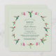 Belle invitation de baptême avec une guirlande peinte à la main à l'aquarelle représentant des colibris d'Anna et à queue large, ainsi que des éléments botaniques sur un fond vert pastel. La taille et le style de police peuvent être modifiés en cliquant sur "Modifier à l'aide de l'outil de conception". Toutes les images de colibris proviennent de peintures aquarelles originales.