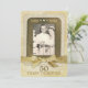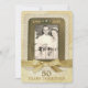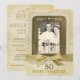 Cette invitation créative pour le 50e anniversaire a un aspect ancien d'autrefois. Le design avant présente un cadre entouré d'une image réaliste de dentelle et mis en valeur avec des images d'accents de strass de ton doré. Remplacez la photo exemple avec votre propre photo en utilisant le modèle facile fourni. Sous la photo se trouve une image d'un nœud en ruban brillant doré et le tout est posé sur un fond qui simule du parchemin antique et une correspondance vintage. Personnalisez l'avant avec les années d'anniversaire (comme indiqué) ou les noms des couples. Deux lignes de texte en bas sont également personnalisables. Le verso présente la même image de correspondance ancienne. Remplacez le texte exemple avec vos propres détails d'événement en utilisant les modèles fournis.