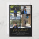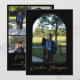Célébrez votre réussite avec style avec le faire-part de remise de diplôme en collage photo à l'arc en écriture script or et noir. Caractérisé par un fond noir audacieux, un cadre photo arqué élégant et une typographie en écriture or luxueuse, ce design dégage une élégance moderne. La mise en page du collage de photos met magnifiquement en valeur de multiples moments marquants tout en conservant une apparence soignée et raffinée. Parfait pour une célébration de fin d'études chic et mémorable, cette invitation fait une impression saisissante dès le premier coup d'œil.