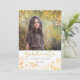 La photo de votre diplômé est mise en évidence avec un design botanique d'une bordure de feuille d'automne aquarelle en couleurs d'automne orange et jaune, le titre GRADUATE dans un faux script manuscrit feuille d'or, leur nom et l'année de graduation sur le devant. L'arrière comprend trois photos et un motif en feuille coordonné et un bloc d'aquarelle jaune-orange avec les détails de la fête de remise des diplômes. CONSEIL PHOTOGRAPHIQUE : Pour obtenir les meilleurs résultats, choisissez une photo avec le sujet au milieu et/ou pré-recadrez-la avec une forme similaire à celle montrée AVANT de télécharger et elle remplira l'espace photo fourni parfaitement. Veuillez communiquer avec le concepteur si vous souhaitez modifier ce design sur un autre produit ou si vous souhaitez coordonner des éléments pour compléter votre ensemble de remise de diplômes.