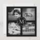 Ajoutez quatre photos et initiale monogrammée à l'avant de la carte de remerciement élégante avec couronne et fond effet lin. Au dos, "Merci" est écrit dans un script noir élégant et tourbillonnant au-dessus d'un message personnel à vos invités de mariage qui peut être personnalisé. De plus, "avec notre amour" est dans le même script ; ajoutez vos noms ci-dessous.
