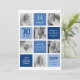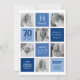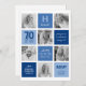 Invitations contemporaines à la fête du 70e anniversaire avec un collage photo moderne, des carrés bleus branchés, et un modèle texte élégant pour vous de personnaliser avec vos propres informations de célébration.
