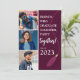 'Friends who Graduate Together, PARTY Together! ' - Ce design moderne est parfait pour les amis qui célèbrent leurs réalisations ensemble en organisant une fête de remise de diplômes conjointe. Le design offre la possibilité de télécharger 3 photos carrés. Le bloc bordeaux peut être changé en n'importe quelle couleur pour représenter votre école et un goût pour symboliser une casquette de graduation. L'inverse a un modèle de fête personnalisable pour vous permettre d'ajouter tous les détails de votre événement.