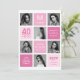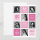 Cartes d'invitation contemporaines pour un 40e anniversaire avec un collage photo moderne, des carrés roses mignons et un modèle de texte élégant que vous pouvez personnaliser avec vos propres informations de célébration.