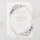 Invitation de mariage moderne florale et géométrique. Dans les couleurs rose doré, pêche et bleu. Cette carte est pour le cas où votre date de mariage est reportée. Entrez vos données, via "personnaliser davantage" vous pouvez déterminer la police, la position, etc. individuellement.