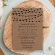 Simple mais élégant, les lampes à cordes de la collection rustique Kraft mariage est un design époustouflant avec de belles lumières à cordes blanches suspendues sur un arrière - plan à effet Kraft, qui est parfait pour toute célébration mariage rustique. Ces invitations peuvent être personnalisées pour votre occasion spéciale et feraient le faire-part parfait pour votre mariage, douche nuptiale, fête de fiançailles, fête d'anniversaire et bien d'autres occasions spéciales. Ajoutez votre libellé personnalisé à cette conception à l'aide des cases "Modifier ce modèle de conception" situées à droite de l'élément, ou cliquez sur le bouton bleu "Customiser" pour arranger le texte, modifier les polices et les couleurs et ajouter des informations ou des images supplémentaires à cette conception. AFFICHER LES ÉLÉMENTS CORRESPONDANTS POUR CETTE COLLECTION