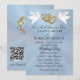Invitation Colombes, Cœurs, Code QR - Bleu pastel/Or