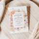 Ce faire-part de mariage présente une belle charpente fleurie en rose, orange, bleu, jaune et blanc, composée de douces fleurs pastel. C'est la façon idéale d'invitation vos invités à votre journée spéciale avec une touche d'élégance et de charme. Les fleurs colorées ajoutent une pop de couleur tout en conservant une esthétique classique et intemporelle. Vos invités seront enchantés de recevoir une invitation si charmante et heureux de célébrer avec vous.