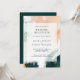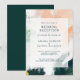 Cette invitation de réception de mariage abstraite et colorée est parfaite pour votre réception bohème moderne unique. Peinte à la main avec des marques de pinceau texturées de vert émeraude foncé, de pêche et de moutarde, toutes surmontées d'un carré transparent minimaliste, elle donnera à votre occasion une atmosphère simple mais rustique et bohème.