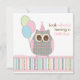 Un petit hibou mignon tenant un trio des ballons en pastel invite vos invités dans le style espiègle !