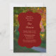 A photograph of a vibrant maple tree standing in a forest clearing. The tree’s leaves are transitioning from bright green to fiery shades of red, orange, and yellow, catching the golden light of the late afternoon sun. A gently winding path, covered with fallen leaves, leads into the background of the image, lined with blurred silhouettes of other trees. Soft sunlight filters through the canopy, creating dappled shadows on the forest floor.
