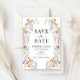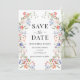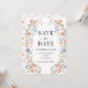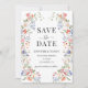 Enhance your bohemian wedding stationery with these elegant and romantic Save the Date invitations, featuring delicate wreaths of colorful wildflowers and meadow blooms in a soft botanical style. This refined design captures the beauty of nature while adding a touch of timeless charm.