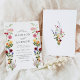 Announce your wedding with timeless elegance using this Colorful Watercolor Wildflower wedding invitation. The design showcases your names and celebration details at the center, framed by graceful watercolor floral arrangements on each side. A vibrant mix of wildflowers in shades of pink, orange, burgundy, purple, red, and yellow is accented with soft greenery, creating a romantic botanical border that feels both refined and organic. The vertical floral frame draws the eye naturally to your wedding information while maintaining a clean, sophisticated layout. The back of the invitation features a coordinating wildflower bouquet, adding a cohesive and thoughtfully designed finishing touch. Perfect for garden weddings, outdoor ceremonies, estate venues, and couples drawn to elegant botanical stationery, this invitation offers a polished and memorable way to share your special day.