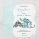 Baby shower invitation featuring colorful cartoon monsters with playful expressions. Text highlights a celebration for "Sophia Robinson" with RSVP details.