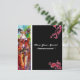 Nuit de masquerade vénitienne colorée, fantaisiste et vibrante. Femme blonde sophistiquée avec masques à plumes, or scintillant, tissus rouges, costumes de bal masqué baroque avec plumes. Peinture à l'aquarelle contemporaine en jaune, bleu vert, rose, noir, paillettes d'or, fioritures de fuchsia brillant, inspirée du Carnaval de Venise, masques vénitiens, Comédie de l'Art (Colombina - Commedia dell'Arte). Ce design cool et artistique est parfait pour les mariages, cérémonies nuptiales, anniversaires, douches de mariée, anniversaire de 16 ans, fêtes costumées d'Halloween, Mardi Gras, bals costumés, fêtes de fin d'année, réunions de famille, cocktails, célébrations du Nouvel An, Saint-Valentin, rassemb