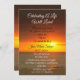 Assurez-vous d'ajouter la date, l'heure et le lieu correctement." Célébrer une vie bien aimée" Célébration de la vie Invitation avec une belle image de coucher de soleil tropical invitations invités et amis à partager un brunch, déjeuner, dîner ou service commémoratif pour commémorer et célébrer la vie d'un être cher qui est passé. Le texte est personnalisable et s'il vous plaît lire et ajouter toutes vos informations avant de commander cette carte. Service commémoratif. Invitations et annonces.