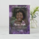 Invitation ou faire-part pour un enterrement, un service commémoratif ou une célébration de la vie. Doté d'une couverture de fleurs violettes pour parcourir une photo de votre choix.