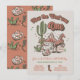 Regardez rétro gravure sur bois, invitations de fête d'anniversaire de cowboy "Comment l'Ouest était un". Caractéristiques graphiques éléments de cowboy western cactus, paysage désertique, cheval avec cactus. Couleurs marron, terre cuite, vert et blanc. Pour apporter d'autres modifications, accédez à Personnaliser ce modèle. En bas, vous verrez “Voulez-vous personnaliser encore plus ce design ? Cliquez sur le bouton MODIFIER à l'aide de l'outil de conception. À partir de là, vous pouvez modifier certaines polices et certaines couleurs, déplacer des éléments ou supprimer ce dont vous avez besoin.