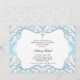 Ce doux design d'invitation est parfait pour la première sainte communion de votre fils. Il s'appelle communion Damas Bleue et Blanc et a un arrière - plan bleu clair avec un motif damassé blanc pâle. Au centre du graphique damassé sur le bleu il y a une jolie croix. Votre texte devient centré - il suffit de changer le texte pour personnaliser votre invitation et vous êtes tous prêts ! Idéal pour n'importe quel service religieux.