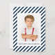 Des rayures blanches et bleues modernes servent de décor à cette carte. Customisez avec une image de votre enfant. Disponible ici : http://www.zazzle.com/store/selectpartysupplies
