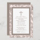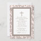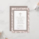 Jolie invitation à la communion rose et marron avec croix décorative et cadre cachemire. Personnaliser pour le baptême, la 1ère communion ou tout événement religieux spécial.