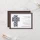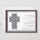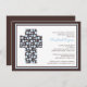 Croix marron contemporaine avec des fleurs bleues saintes Première communion invitation à une communion de garçon.