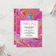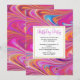 Une invitation d'anniversaire avec une conception psychédélique trippy cool. Rose, orange et touches de bleu tourbillonnant autour. Ambiance rétro hippie.