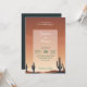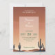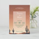 Célébrez votre amour avec un design chaud et moderne du désert, mettant en vedette un dégradé de terre cuite à pêche qui évoque un ciel de coucher de soleil radieux. Des silhouettes minimalistes de cactus et de collines ajoutent une touche subtile du sud-ouest, tandis que le centre en ivoire doux offre une mise en page épurée pour vos détails de mariage. Parfait pour les mariages bohèmes, en plein air ou sur le thème du sud-ouest.