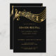 Ce modèle d'invitation à un concert de musique éditable présente un stave avec des notes de musique et une clef trible en faux or sur un arrière - plan noir. Idéal pour des concerts de musique professionnelle, de musique de chambre et des spectacles d'étudiants tels que les récitals des seniors et des diplômés. Personnalisez-le avec votre propre texte et profitez de l'outil d'édition pour affiner la taille et le placement de la police. Si vous avez besoin d'aide pour personnaliser, n'hésitez pas à nous envoyer un message sur Zazzle