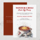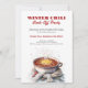 Invitez vos amis et votre famille à votre concours de chili hivernal. Parfait pour les soirées où les invités apportent leur chili préféré. Personnalisez le texte, la date et le lieu pour un effet personnel. Design chaleureux, accueillant et festif idéal pour les rassemblements hivernaux.