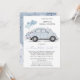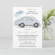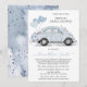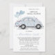 Jolie aquarelle bleue Floral Volkswagen Beetle Car Décoré avec Ballons et Buntings Bleus et Fleurs Bleues de glace Conduite par la douche nuptiale Invitations
