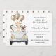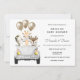 Invitations aimaient ceux à conduire à travers pour célébrer les parents d'être! Doté d'une voiture blanche vintage surmontée d'animaux socialement distants portant masques et ballons d'or. Idéal pour une douche neutre. Customisez votre libellé. Cliquez sur "Customiser plus loin" pour modifier le style, la taille et la couleur de la police si vous le souhaitez.