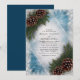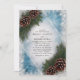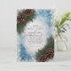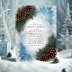 Élevez votre mariage d'hiver avec cette superbe invitation de mariage hivernal aux pommes de pin et au givre. Doté d'un fond bleu givré profond orné de branches de pin réalistes et de grosses pommes de pin détaillées, ce design capture l'essence d'une journée hivernale magique. Les bords de givre givrés offrent un cadre parfait pour vos détails de mariage personnalisés, ce qui en fait l'idéal pour une célébration hivernale cosy et sophistiquée. Cette invitation allie le charme rustique à des éléments hivernaux élégants, parfaite pour les couples qui souhaitent un mariage d'hiver ou un thème de vacances inspiré par la nature.
