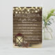 lanterne rustique et pinecones automne ou hiver nuptiale invitation à la douche avec grange rustique foncé et lumières à cordes brillantes. Les polices et le texte amusants ajoutent juste un peu de fantaisie à cette invitation à la douche nuptiale rustique et ludique.
