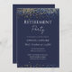 Facile à ajuster l'invitation de la fête de retraite. Pas de photo, un script de fantaisie, et des confettis bleu et or. Diverses couleurs disponibles. Couleur plate. Tout le texte est réglable. Un grand rappel pour votre grande fête de retraite !