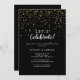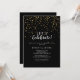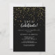 Ce confetti d'or | black fêtons l'invitation de la fête est parfait pour un fiançailles simple et classe, bachelorette, retraite ou tout événement ou fête. L'élégant design fantaisiste présente des confettis de parties scintillant en faux or sur la calligraphie noire et minimaliste avec une atmosphère boho moderne.