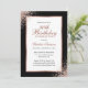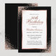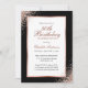 Elégante invitation d'anniversaire en or noir et rose avec détails de fête d'anniversaire dans un cadre en or rose orné de confettis en or rose. Invitation d'anniversaire en or noir et rose. Invitation d'anniversaire d'or rose. Personnalisez facilement ce modèle à n'importe quelle fête d'anniversaire.