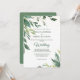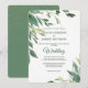 Sur cette invitation de mariage toute la saison, votre texte personnalisé est encadré de feuilles bleu-vert doux en haut à gauche et en bas à droite. Les feuilles en cascade sur la couleur douce sont de minuscules confettis dorés. Votre texte est en deux tons de vert assorti au centre. L'arrière de l'invitation est assorti au bleu vert, avec la même superposition de confettis. Belle, moderne et chic ! Les couleurs de cette invitation sont appropriées du printemps à l'automne. Assurez-vous de voir les produits mariages correspondants dans notre magasin.
