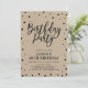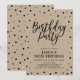 Célébrez votre jour spécial avec ce modèle d'invitation de fête d'anniversaire moderne et élégant. Ce design présente des confettis noirs chic avec un fond en papier kraft.