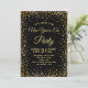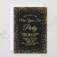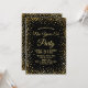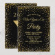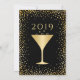 Invitez vos invités à votre fête du Nouvel An avec style avec cette invitation de fêtes. Ce modèle présente un fond noir avec des confettis dorés faux parsemés au-dessus et en dessous des mots "Bonne année ! 2019". Le dos de la carte a une bordure de confettis et un verre à cocktail doré au centre. Conçu par l'artiste © Susan Coffey.