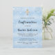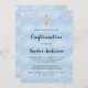 Pour une confirmation, célébrer un garçon. Un faux arrière - plan bleu à l'allure métallique. Décoré avec de la poussière de parties scintillant en faux bleu. Personnalisez et ajoutez le nom et les détails. Le nom et la confirmation sont écrits avec un script de style manuscrit