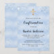 Pour une confirmation, célébrer un garçon. Un faux arrière - plan bleu à l'allure métallique. Décoré avec de la poussière de parties scintillant en faux bleu. Personnalisez et ajoutez le nom et les détails. Le nom et la confirmation sont écrits avec un script de style manuscrit