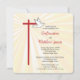 Les rayons dorés sont une belle toile de fond pour l'invitation de confirmation d'un garçon. Une colombe, représentant l'Esprit Saint, survole une croix rouge. Personnalisable pour ajouter vos propres détails de cette Confirmation et de la fête. Cette option carré est un excellent moyen pour la famille et les amis invitations à votre jour saint de sa Confirmation.