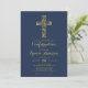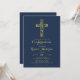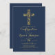 Invitation de confirmation bleue moderne avec une croix d'or.Personnalisez avec vous le texte. Assurez-vous de vérifier tous les autres articles de cette jolie collection de confirmation pour lui.