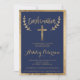 Faux typographie feuille or élégant bleu marine avec confirmation de croix d'or avec une bordure d'or géométrique. Une invitation de baptême moderne avec cette main de brosse en or jaune, moderne, simple, élégant et chic, en lettrage de typographie sur un arrière - plan bleu marine. Parfait pour une soirée simple, élégante et moderne. Si vous avez besoin d'un texte modifié et customisé n'hésitez pas à me contacter!