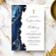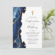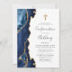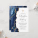 Le bord gauche de cette élégante invitation à la confirmation moderne comporte une bordure en aquarelle bleu marine ornée d'une parties scintillant en faux or. Une fausse croix de feuille d'or apparaît au-dessus du texte personnalisable, qui combine l'écriture manuscrite, les polices cuivre et italique en gris fusain sur un arrière - plan blanc. L'envers est assorti d'un design d'agate bleu marine et or.