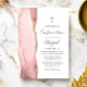 Le bord gauche de cette élégante invitation à la confirmation moderne comporte une bordure en aquarelle rose vif et ornée d'une parties scintillant en faux or. Une fausse croix de feuille d'or apparaît au-dessus du texte personnalisable, qui combine l'écriture manuscrite, les polices cuivre et italique en gris fusain sur un arrière - plan blanc. L'envers est assorti d'un design d'agate en blush et or.