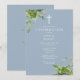 Cette élégante invitation de confirmation de botanique de verdure d'eucalyptus bleu poussiéreux peut être personnalisée avec vos informations en typographie chic avec des initiales de monogramme au verso. Conçue par Thisisnotme©